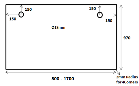 Width From 800mm to 1800mm, Every 50mm increment.